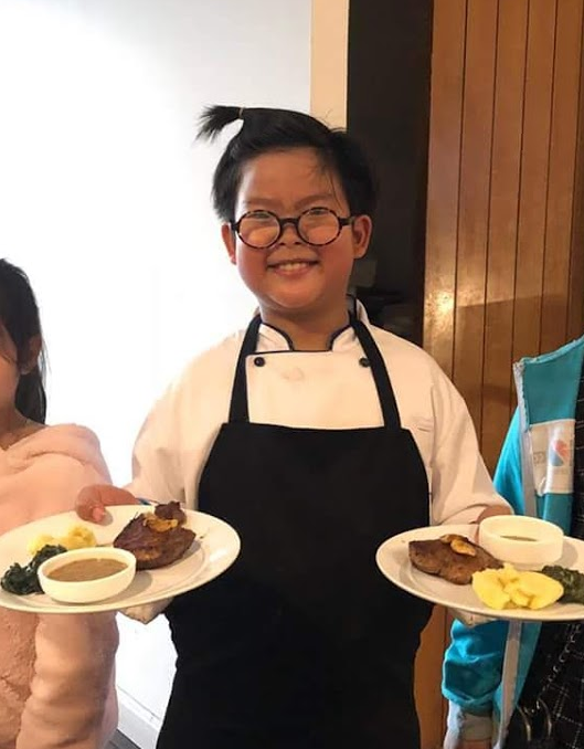 I plan to keep cooking! I have launched a new YouTube channel, which I would love people to subscribe to: “Cooking English.” My goal is that it will help me earn money for a Chef’s Table at the restaurant. I’m planning to make 9 courses for 9 people at a time. That’s a total of 81 dishes! My first Chef’s Table is coming up on March 14, which is my birthday. You are welcome to come try my food! I hope to have a lot of Chefs Tables and to get to go on a Disney Cruise. Then I want to open a restaurant and get a Michelin star.